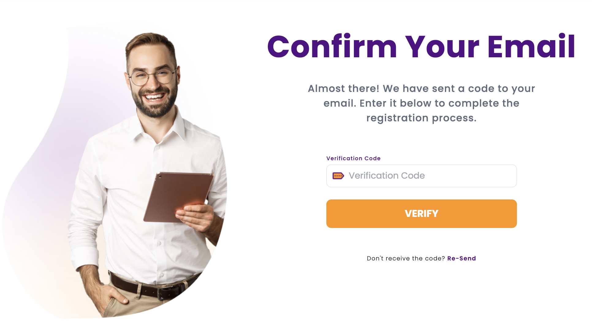 Verify your email by entering the verification code emailed to you.